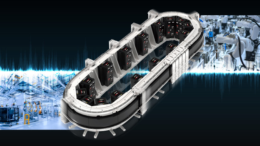 これからの搬送方式として注目される、リニアトラックシステム。複雑な工程を自動化したいリチウムイオン電池や半導体、