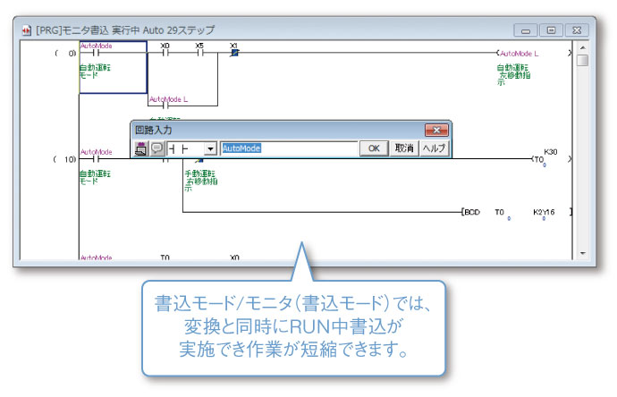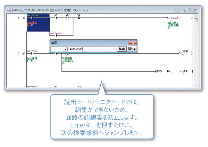 GX Developerと同様の読出モード・モニタモードに対応することで、モニタ・検索時の誤操作がなくなります。