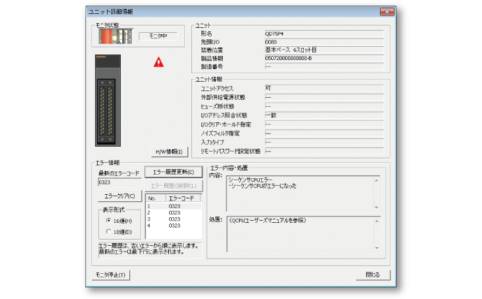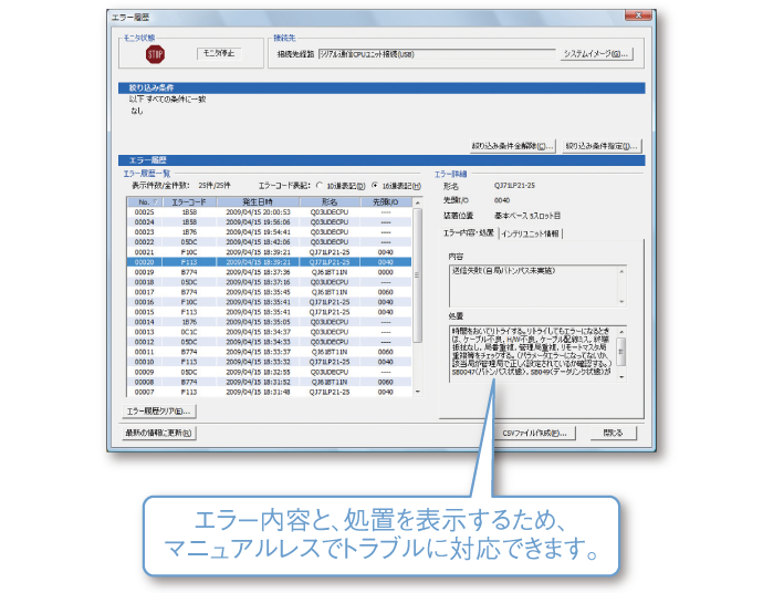CPUのエラー履歴をすばやく確認し、異常発生にすばやく対応できます。