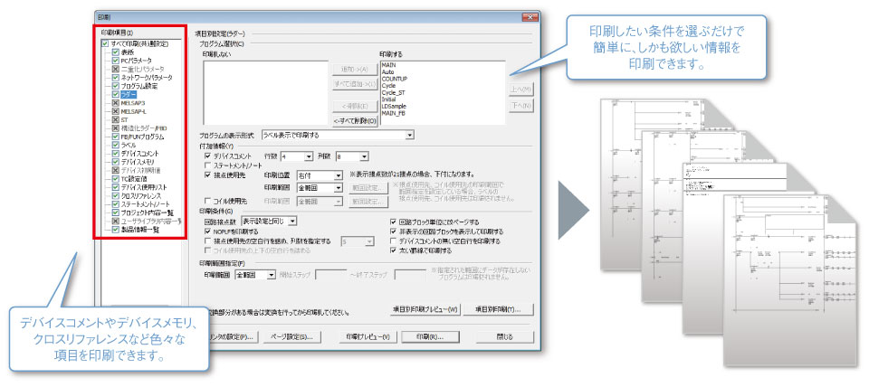 印刷する項目をきめ細かく設定できます。複数プログラムを一度の操作で印刷できます。