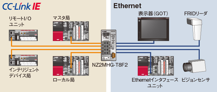 - CC-Link IE機器と汎用Ethernet機器を混在できます
