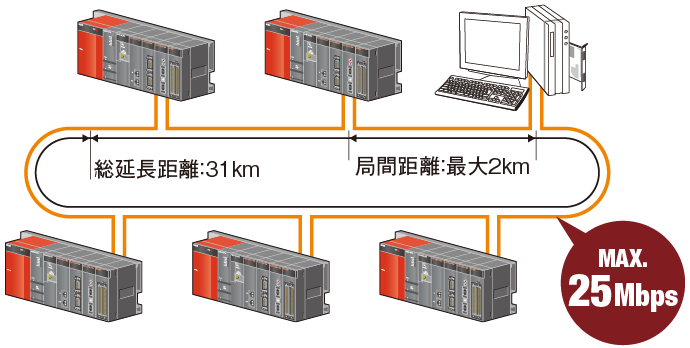 | 1ネットワークの接続局数 | 32局(管理局:1、通常局:31) | |||