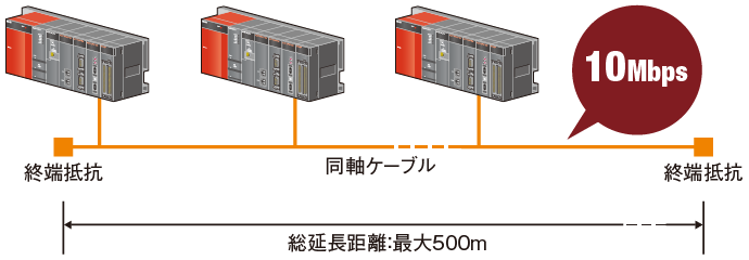 10Mbps/25Mbpsの高速通信を実現しました。局間・総延長距離が長く、高いノイズ耐量を有しています。 - 同軸バスシステム