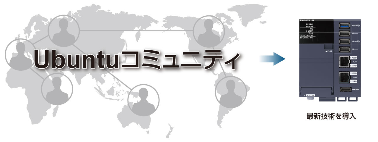 Windows®アプリケーションをベースユニット上で使用できるので、他のCPUユニットや入出力ユニットなどと簡単に情報連携ができます。シーケンサと同等の堅牢性を備え、過酷な現場においても安定して動作し続けるパソコン環境を提供します。自然冷却による動作を実現しており、ファンの故障による動作停止リスクがありません。また、標準搭載OSのWindowsに加え、パートナー提供OSとしてUbuntuもご利用できます。
