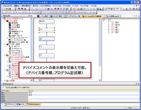 豊富なプロジェクトツリー機能より、モーションSFCプログラム作成を支援します。