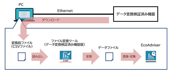 データ変換検証済み機器で収集したデータをEcoAdviserで収集可能な形式に変換するツールです。