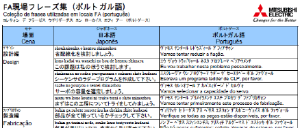 主に製造業の設計現場で用いられる技術的な専門用語(750語以上)の解説を収録したFA用語解説集(日本語⇔ポルトガル語他)をご用意しました。現地スタッフの技術力向上にご活用頂けます。