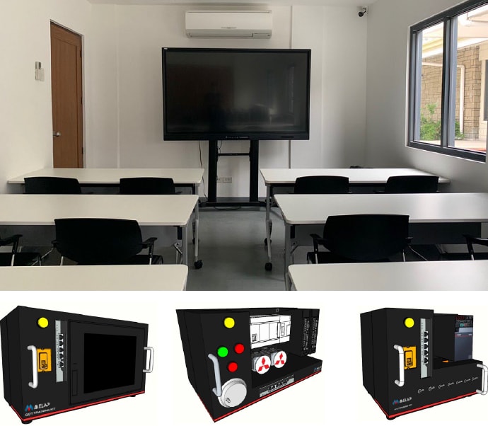 全て実機を用い、基本操作から応用プログラミングまで英語、タガログ語でトレーニングを行います。