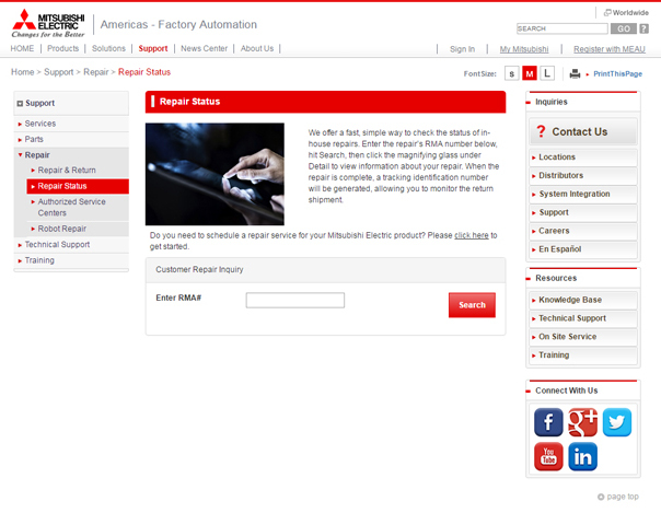 MITSUBISHI ELECTRIC AUTOMATION. INC. ウェブサイトから、ご要望のロケーション・機種に応じた最適な代理店を検索頂けます。